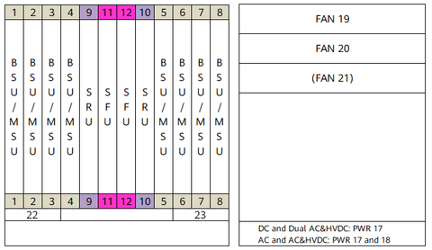 Number of Slots | 22 slots, including 16 BSU/MSU, 2 MPUs, and 4 SFUs | 12 slots, including 8 BSU/MSU, 2 SRUs, and 2 SFUs | 22 slots, including 16 BSU/MSU, 2 MPUs, and 4 SFUs | 11 slots, including 8 BSU/MSU, 2 SRUs, and 1 SFU | 5 slots, including 3 BSU/MSU and 2 MPUs |